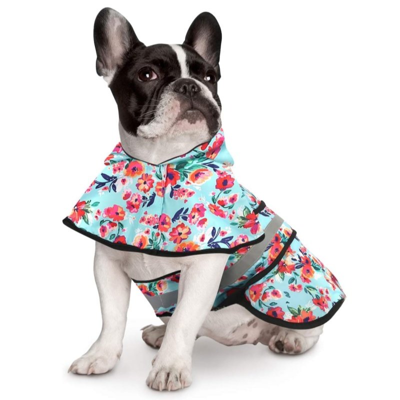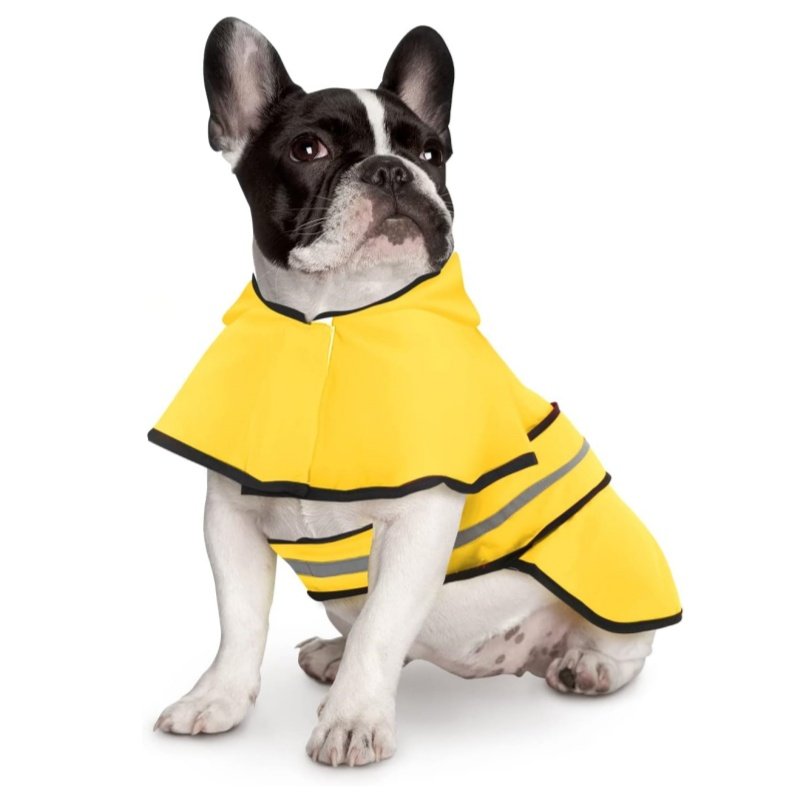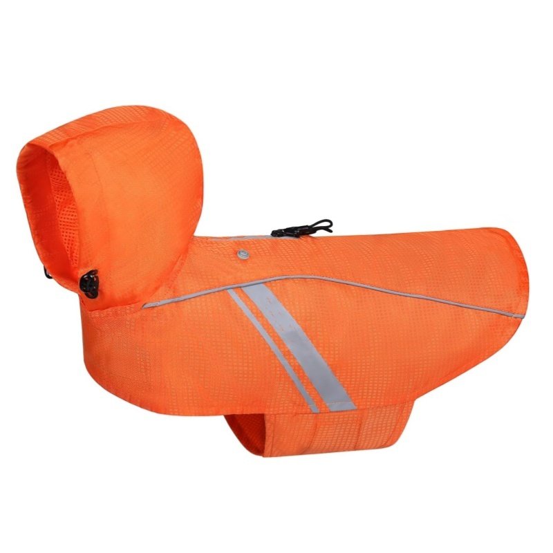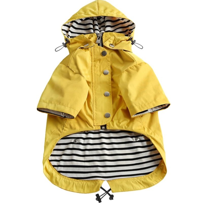 Our super lightweight rain jacket has a breathable mesh interior that helps to keep your dog cool, while reflective trim ensures their visibility at night and on those extra-gloomy days.