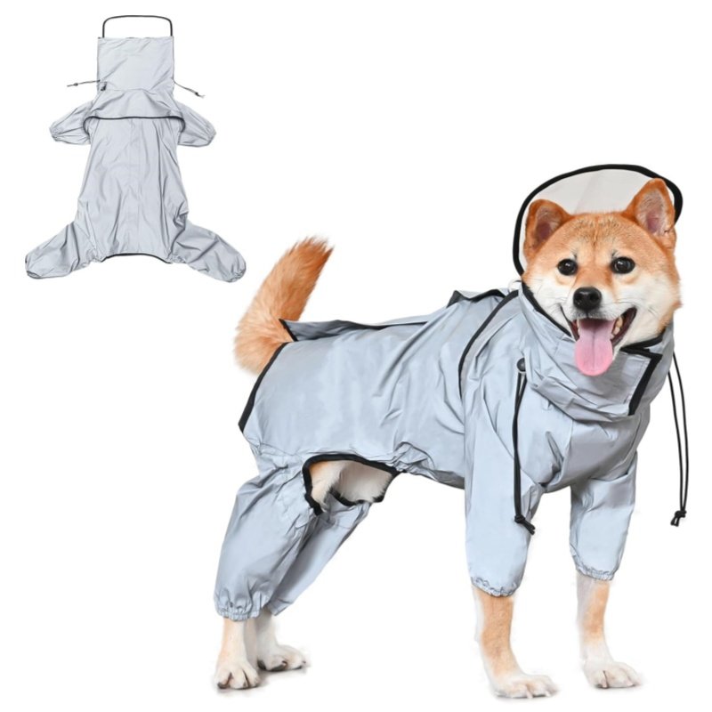 Pet wear dog clothes, Dog Raincoat – Waterproof Rain Jacket with Transparent Hood, Fully Reflective & Adjustable Pet Rain Poncho for Puppy -Grey, dog costume cosplay pet clothes