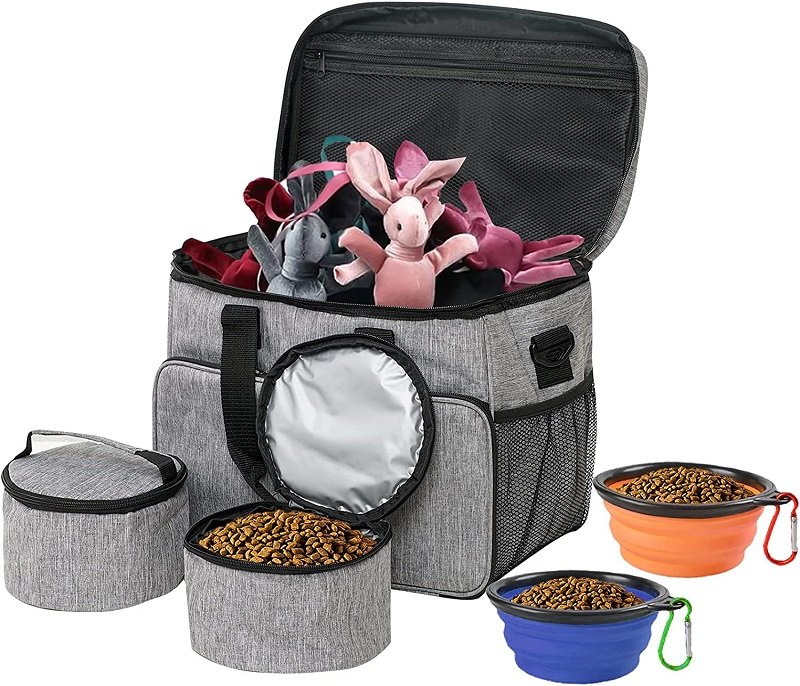 Wholesale Fashion Canvas Food Treat Pouch Dog Cat Travel Tote Pet Travel Bag With Bowl, dog travel pet bag, pet carrier for bike, pet carrier basket