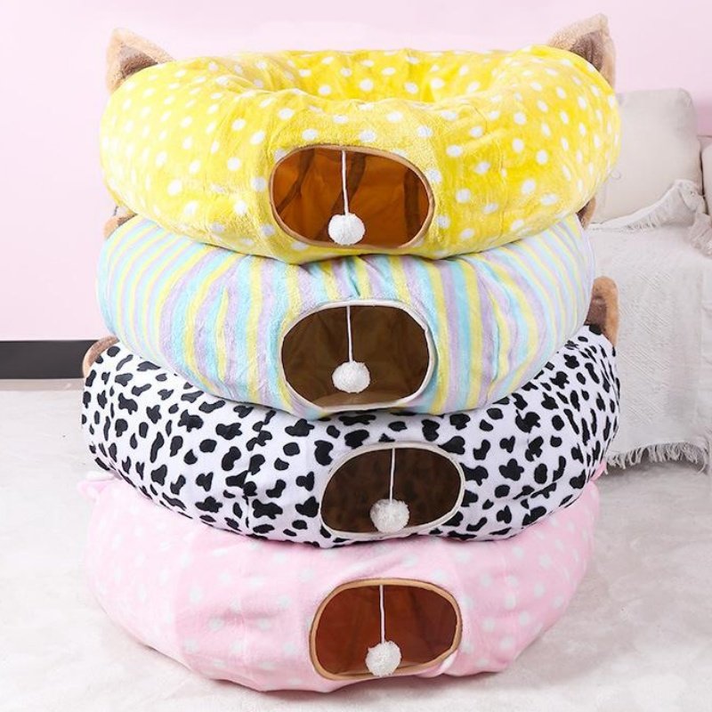 Tunnel and cat bed made of plush, very soft and comfortable, your cat will love to sleep on the cat bed.
