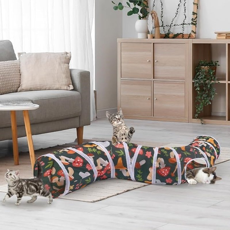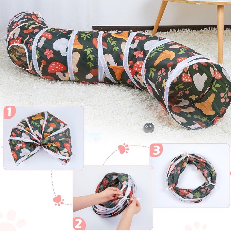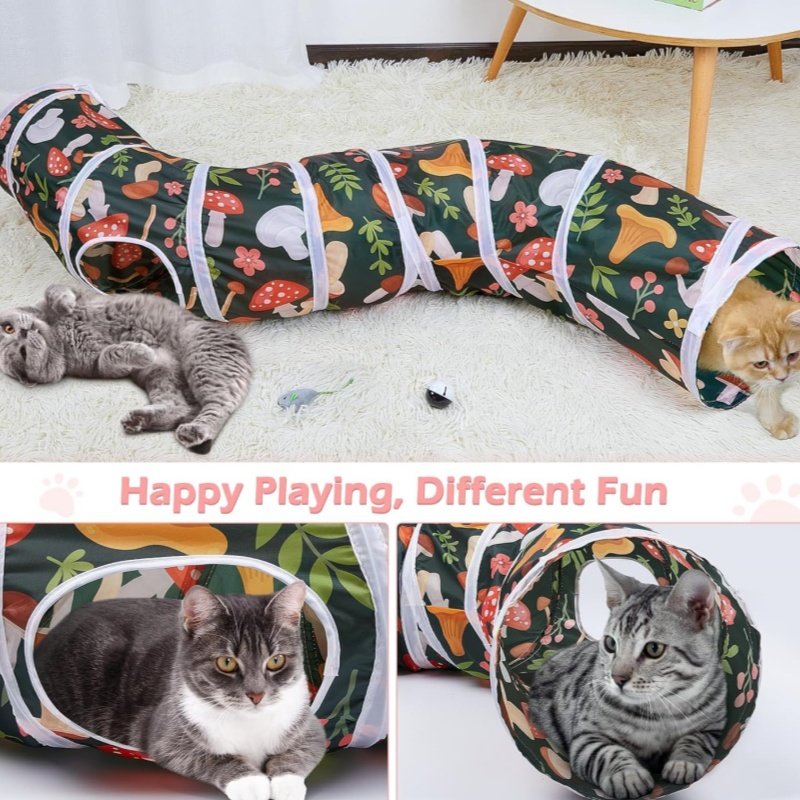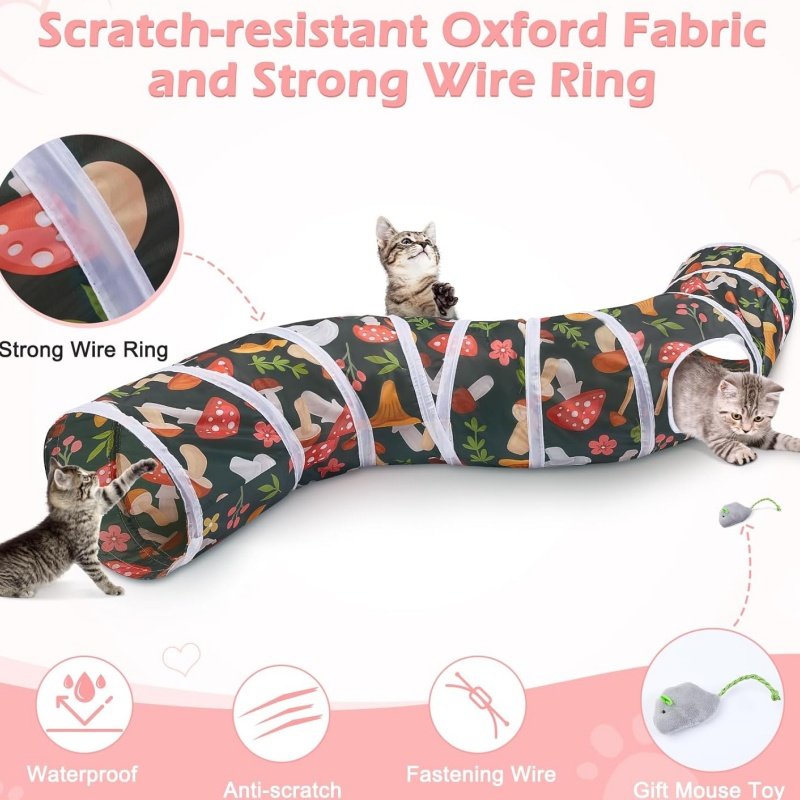 CAT TUNNEL: The S-shaped design multi-channel is suitable for cats’ nature of drilling in and out; small balls for cats to play are hung at the exit; the skylight opening allows pets to enter and exit more freely.