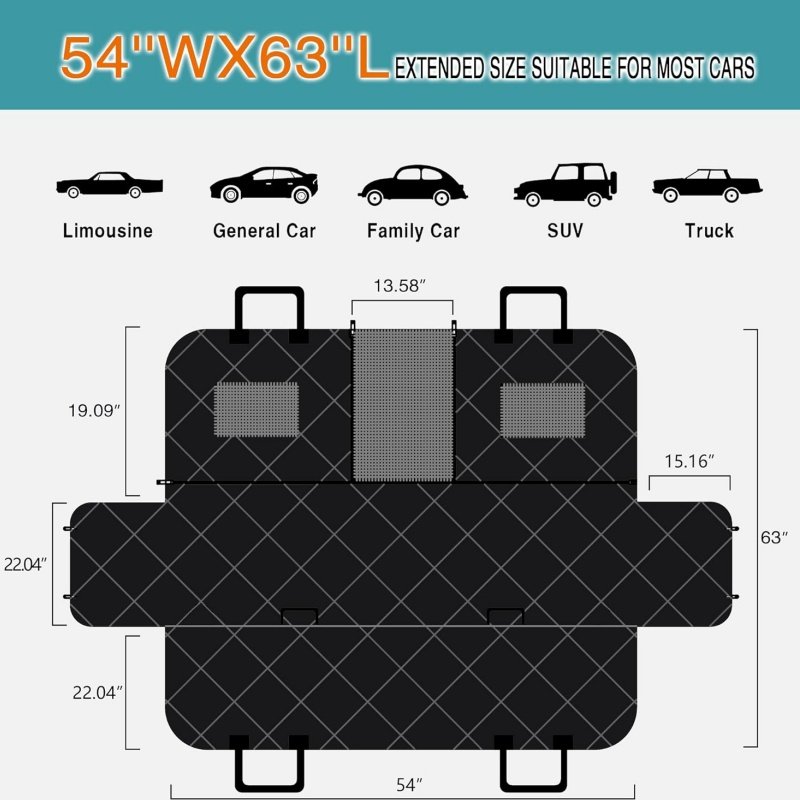 KEEP CAR CLEAN & TIDY : The size of our dog car seat cover is 54″×63″. The dog car seat cover is made of 4 layers of fabric to protect your seat from mud, liquid, hair or any mess, let the pet car seat cover be more durable. The design of dog hammock can effectively protect the back of the front seat, rear seat and doors. The universal size of is compatible with different cars, trucks, SUVs.