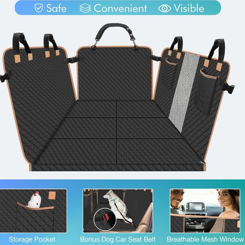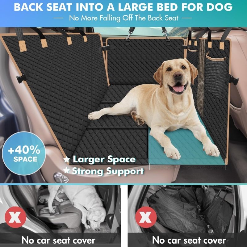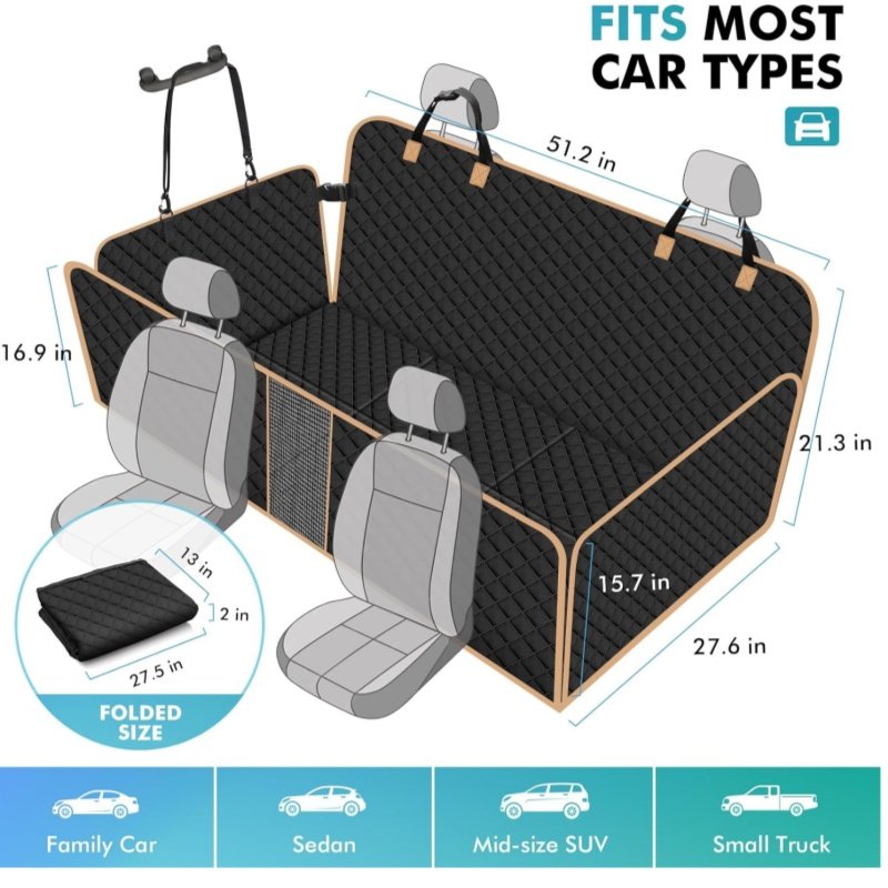 【Designed for Your Car】The water resistant dog car hammock with side flaps protects your backseat and car doors from scratches, and keeps your car’s upholstery free from unpleasantries like dog hair, urine, or vomit.