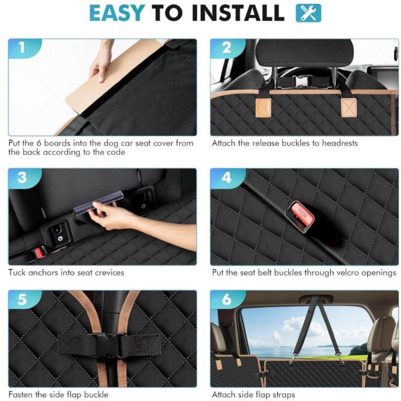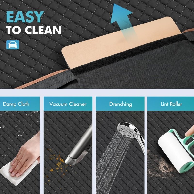 【Designed for You – Easy Installation and Cleaning】Only in 5 minutes, setting up our back seat extender for dogs is a piece of cake! Simply open it, insert the 6 hard bottom, spread it over the back seat. Buckle up the buckle and hang the strap on the car seat headrest pole. Easy to clean with a damp cloth or vacuum.