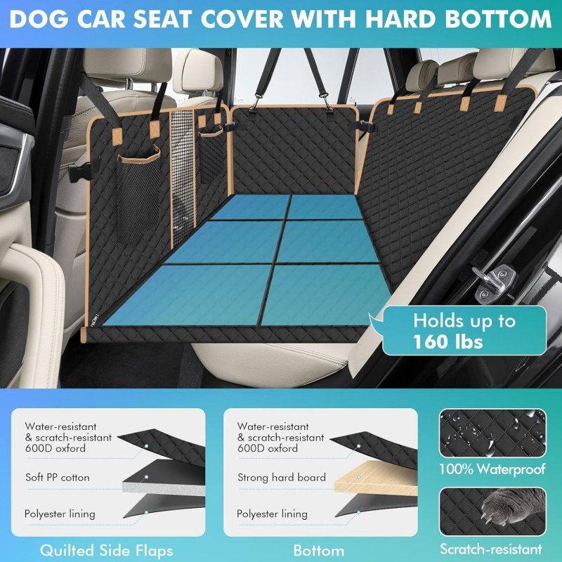 Dog Car Seat Cover with Hard Bottom, Dog Back Seat Extender for Dogs, Hard Bottom Dog Hammock for Car, SUV, Black, dog seat covers, best dog seat cover Australia, best dog seat cover forjeep wrangler, dog seat cover hard bottom