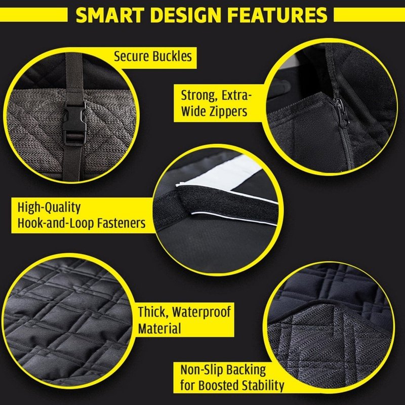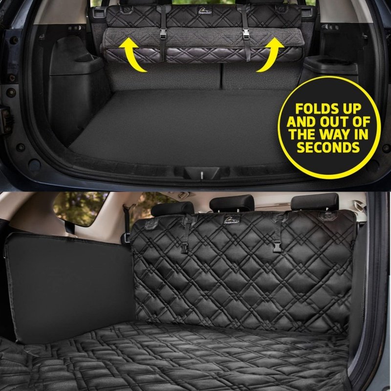 Convenience Like Never Before – Fold & Reuse – Need to load additional cargo or clean the car? Simply fold the cover up to the headrest and tie it. Ready to go again? Unfasten the hooks in minutes with the “Fold and Reuse” design. Easy installation in minutes with hook and loop fasteners. Includes suction cups for added stability.