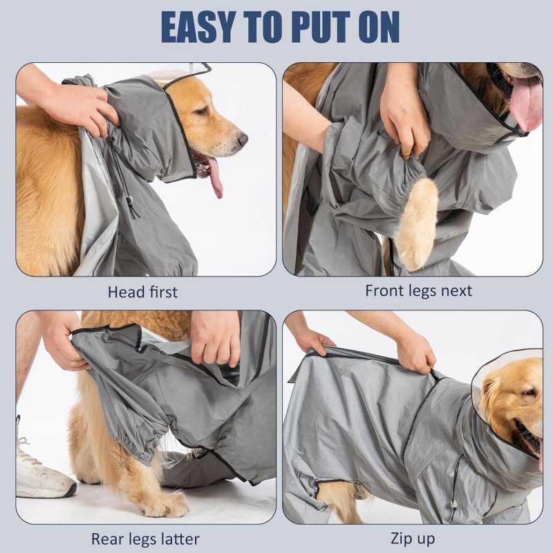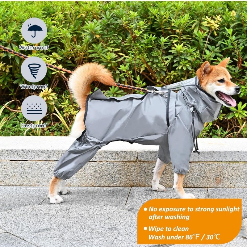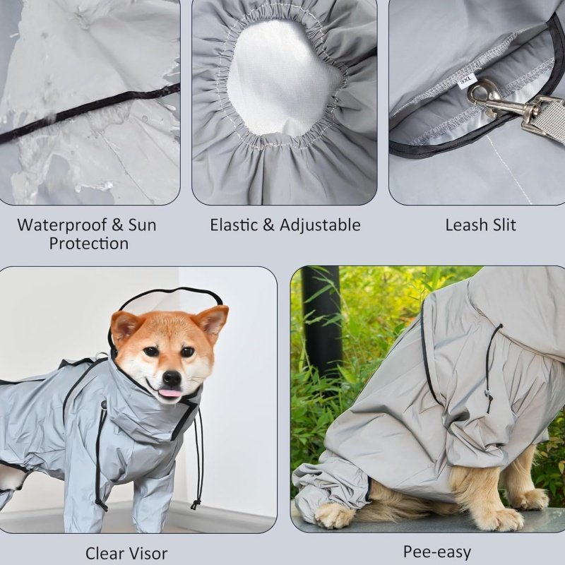Pet wear dog clothes, Dog Raincoat – Waterproof Rain Jacket with Transparent Hood, Fully Reflective & Adjustable Pet Rain Poncho for Puppy -Grey, dog costume cosplay pet clothes